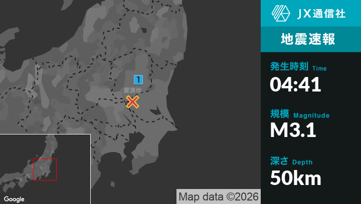 1月31日 4時41分頃発生した地震(最大震度1)