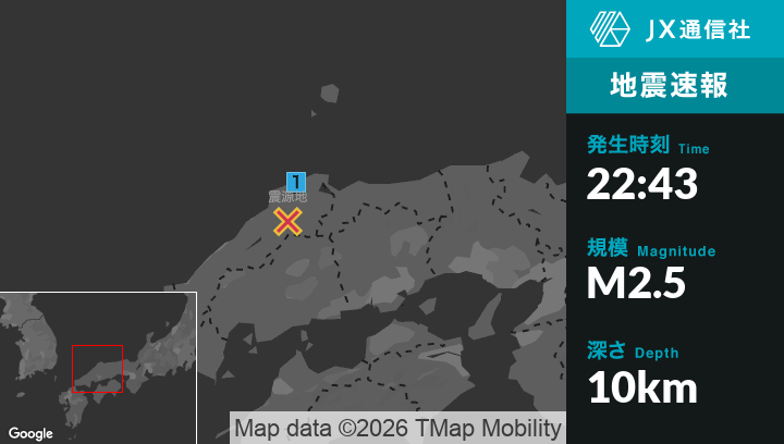 2月6日 22時43分頃発生した地震(最大震度1)