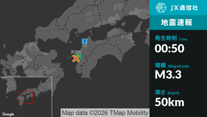 3月2日 0時50分頃発生した地震(最大震度2)