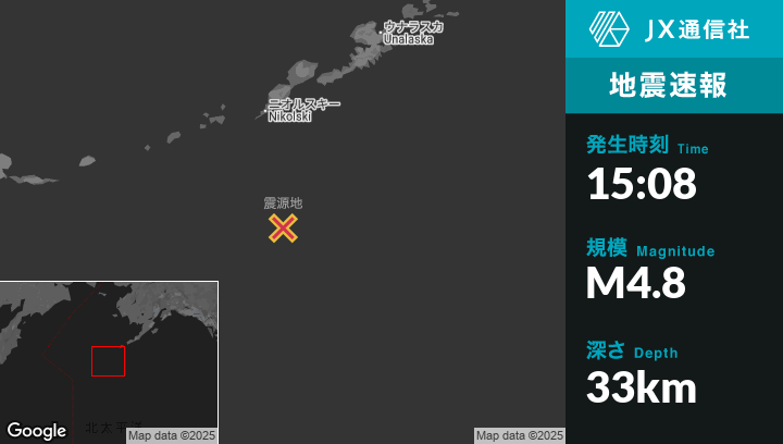 | 震源地 | アラスカのNikolskiから南155kmの地点 |