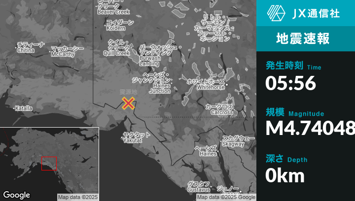 12月07日 05:56頃、アラスカのYakutatから北93kmの地点でM4.740482412749889の地震がありました。