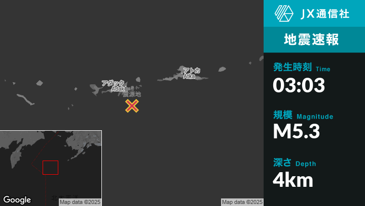 | 震源地 | アラスカのAdakから南南東53kmの地点 |