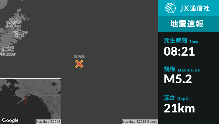 | 震源地 | アラスカのKodiakから東南東291kmの地点 |