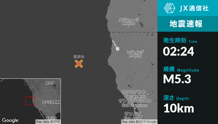 | 震源地 | カリフォルニアのFerndaleから西190kmの地点 |