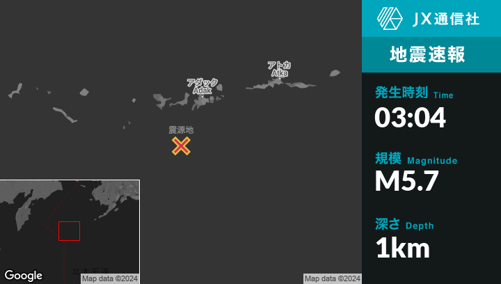 | 震源地 | アラスカのAdakから南南西110kmの地点 |