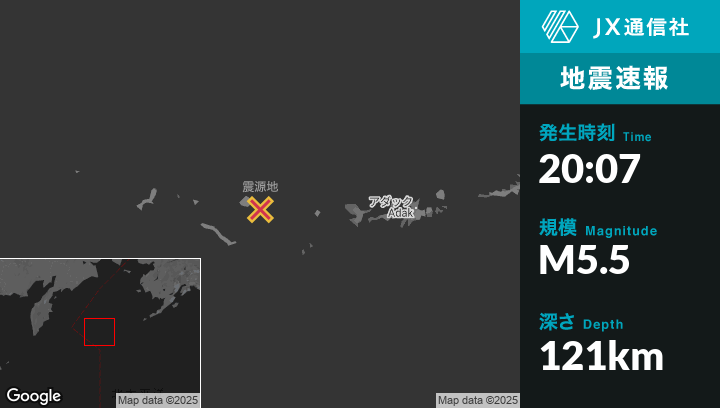 | 震源地 | アラスカのAdakから西235kmの地点 |