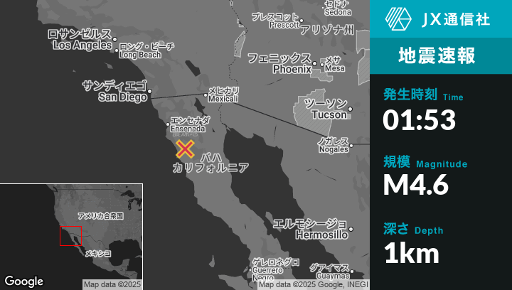 10月07日 01:53頃、メキシコのSan Vicenteから東16kmの地点でM4.6の地震がありました。