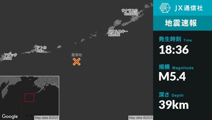 | 震源地 | アラスカのNikolskiから南西208kmの地点 |