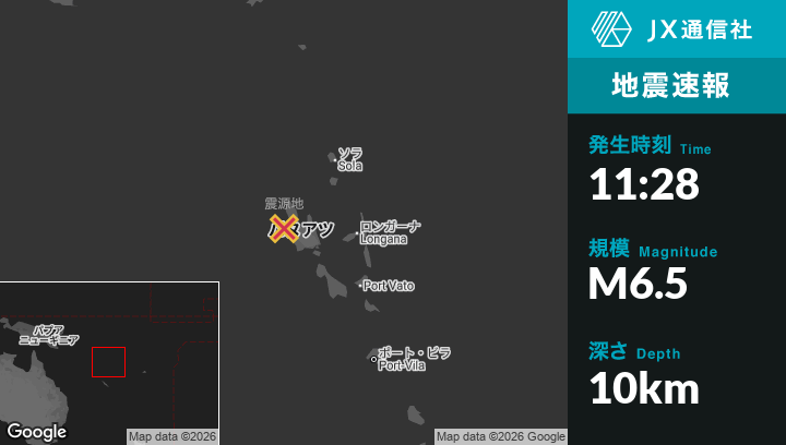 | 震源地 | バヌアツのPort-Olryから西61kmの地点 |