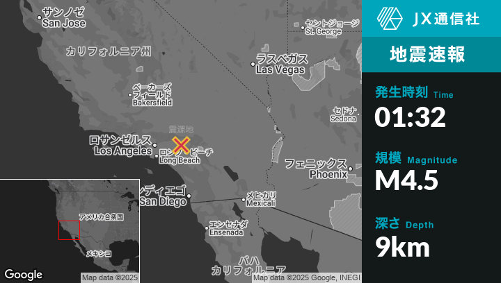 | 震源地 | カリフォルニアのFontanaから北6kmの地点 |