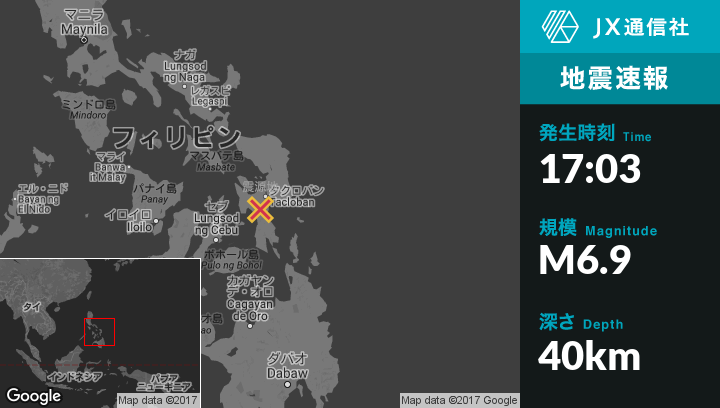 7月06日 17:03頃、フィリピンのPastranaから南西6kmの地点でM6.9の地震がありました。