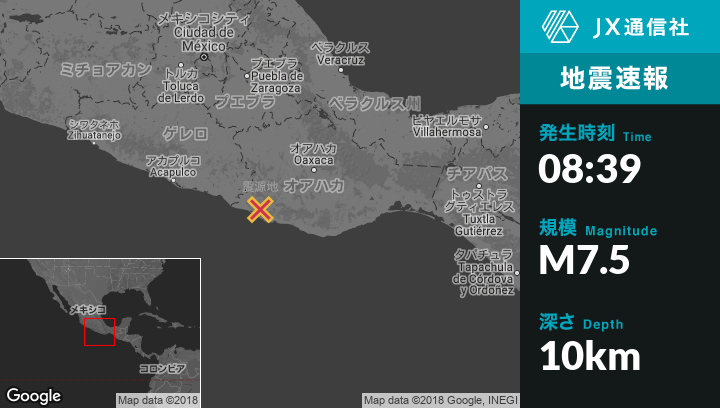 | 震源地 | メキシコのPinotepa de Don Luisから南4kmの地点 |