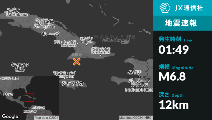 | 震源地 | キューバのBartolomé Masóから南40kmの地点 |