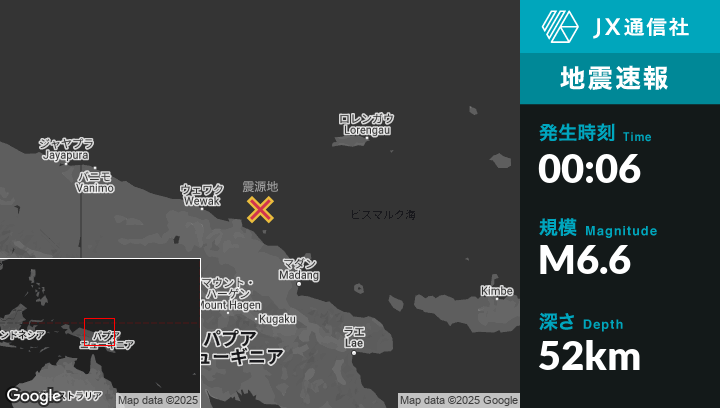 | 震源地 | パプアニューギニアのAngoramから北東116kmの地点 |