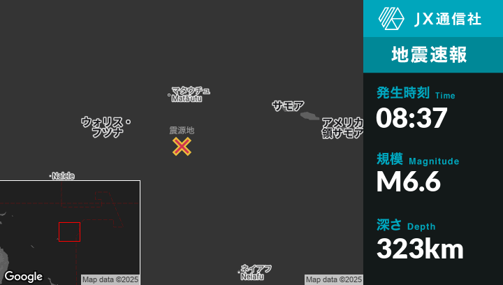 7月25日 08:37頃、ウォリス・フツナのMata-Utuから南南東165kmの地点でM6.6の地震がありました。