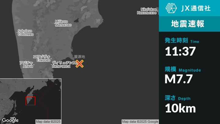 | 震源地 | ロシアのPetropavlovsk-Kamchatskyから東120kmの地点 |