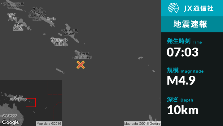 | 震源地 | ソロモン諸島のKirakiraから南南西76kmの地点 |