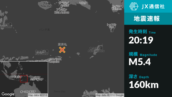8月18日 20:19頃、東ティモールのDiliから東北東318kmの地点で地震がありました。