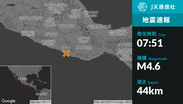 | 震源地 | メキシコのCuajinicuilapaから東南東17kmの地点 |