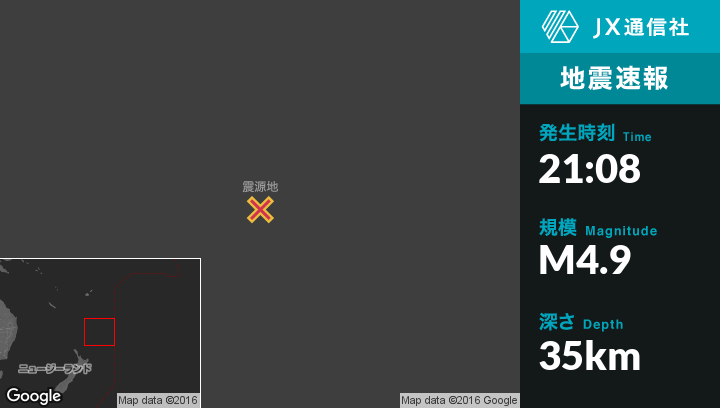 8月19日 21:08頃、ニュージーランドのRaoul Islandから南南東95kmの地点で地震がありました。
