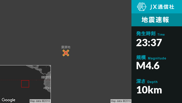 8月20日 23:37頃、フランスのClipperton Islandから南1779kmの地点で地震がありました。