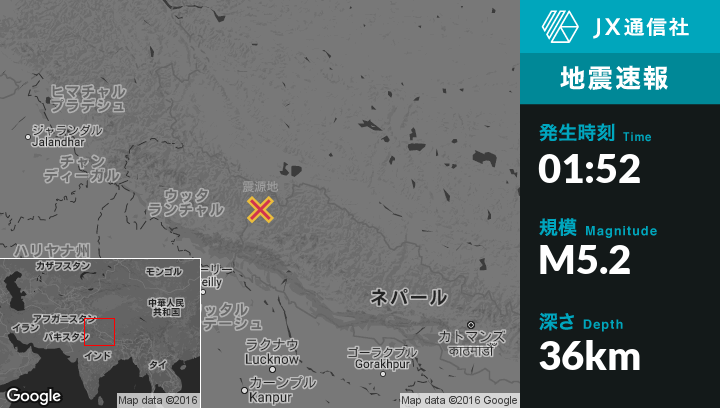 12月02日 01:52頃、インドのDharchulaから北北東26kmの地点でM5.2の地震がありました。