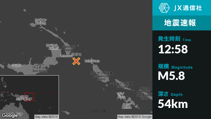 | 震源地 | パプア ニューギニア独立国のTaronから南南東88kmの地点 |