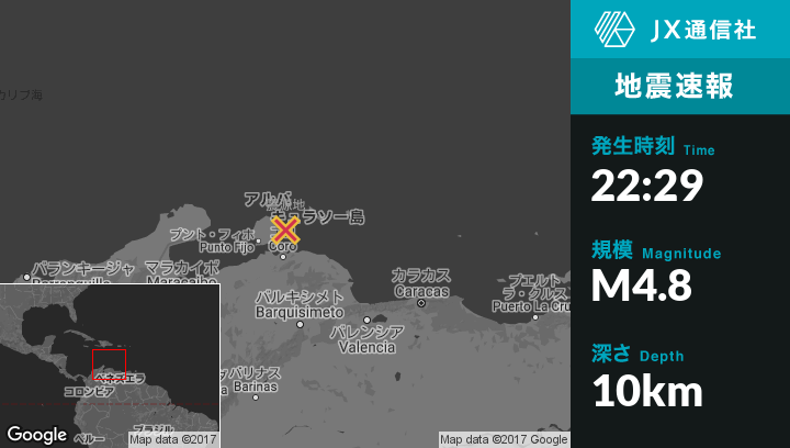 | 震源地 | キュラソーのDorp Sotoから西南西62kmの地点 |