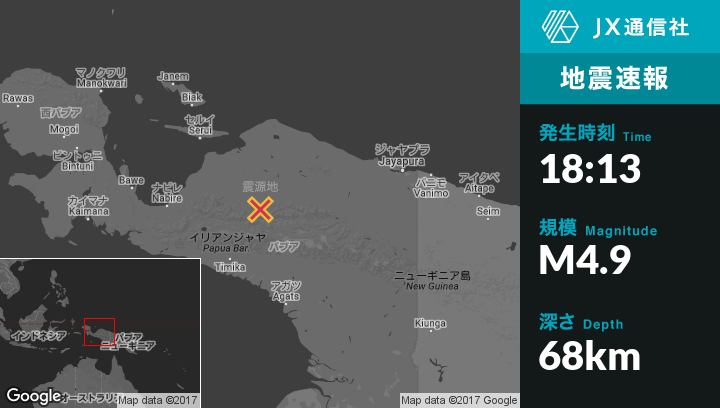 | 震源地 | インドネシアのEnarotaliから東北東148kmの地点 |
