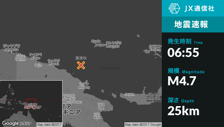 | 震源地 | パプア ニューギニア独立国のAngoramから東北東182kmの地点 |