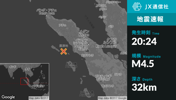 | 震源地 | インドネシアのSinabangから東51kmの地点 |