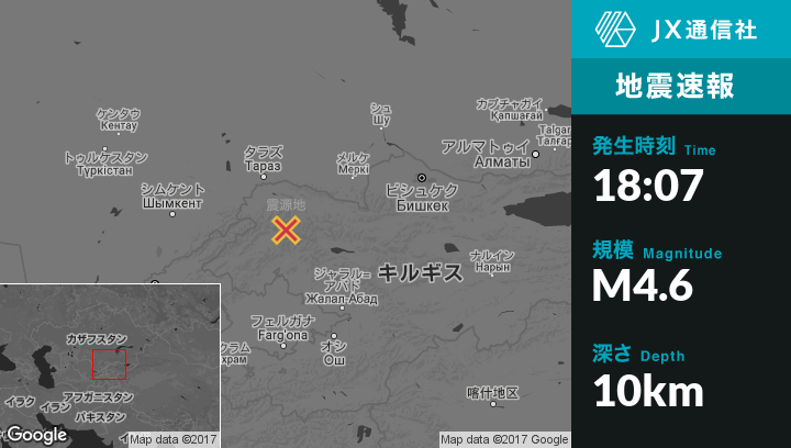 | 震源地 | キルギスのLeninpol'から南33kmの地点 |