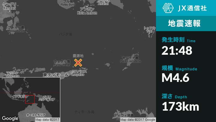| 震源地 | 東ティモールのDiliから東北東238kmの地点 |
