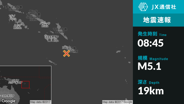 | 震源地 | ソロモン諸島のKirakiraから南西59kmの地点 |