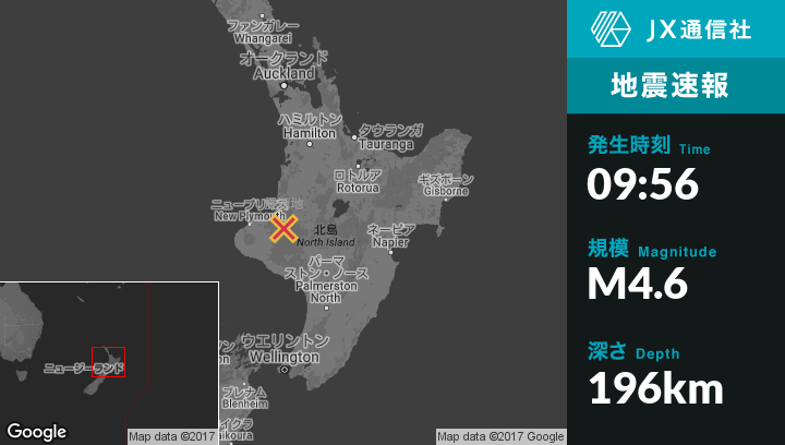 | 震源地 | ニュージーランドのWaitaraから東南東45kmの地点 |