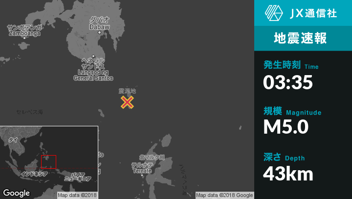| 震源地 | フィリピンのSaranganiから南東193kmの地点 |