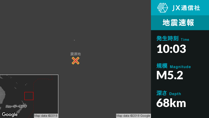 1月10日 10:03頃、ニュージーランドのRaoul Islandから南136kmの地点でM5.2の地震がありました。