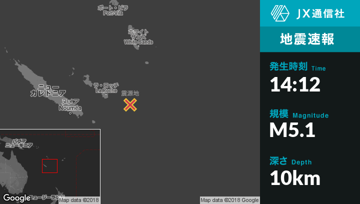 | 震源地 | ニューカレドニアのTadineから東南東127kmの地点 |