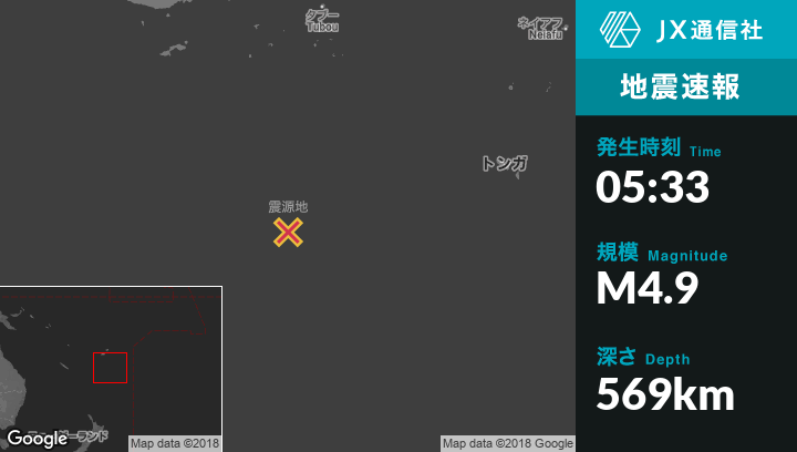 | 震源地 | フィジーのNdoi Islandから南南西201kmの地点 |