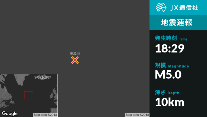 | 震源地 | グリーンランドのNanortalikから南東934kmの地点 |