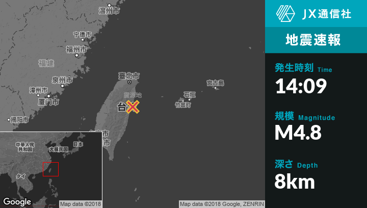 2月06日 14:09頃、台湾のHualianから北北東23kmの地点でM4.8の地震がありました。
