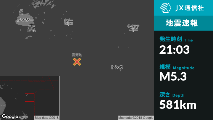| 震源地 | フィジーのNdoi Islandから東54kmの地点 |