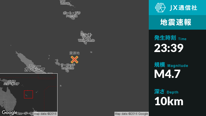 | 震源地 | ニューカレドニアのTadineから北北東123kmの地点 |