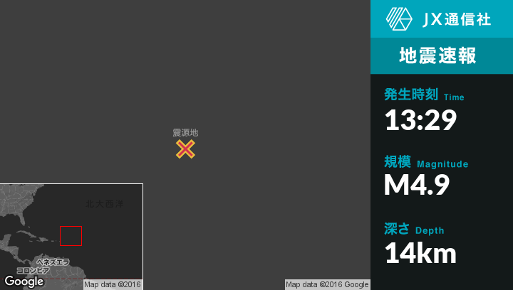 10月08日 13:29頃、バーブーダのCodringtonから北東551kmの地点でM4.9の地震がありました。