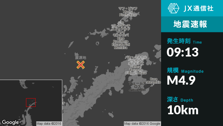 | 震源地 | 南極大陸のPalmer Stationから北東171kmの地点 |