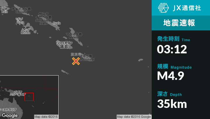 | 震源地 | ソロモン諸島のKirakiraから西南西97kmの地点 |