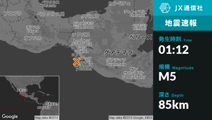 | 震源地 | メキシコのPijijiapanから南南西62kmの地点 |