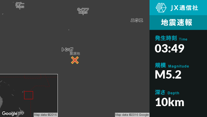 | 震源地 | トンガの`Ohonuaから南東61kmの地点 |