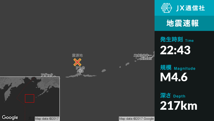 | 震源地 | アラスカのAtkaから北北西66kmの地点 |