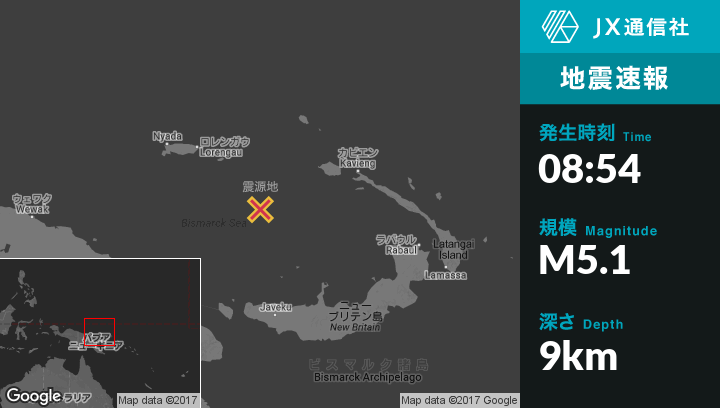 | 震源地 | パプアニューギニアのLorengauから南東209kmの地点 |